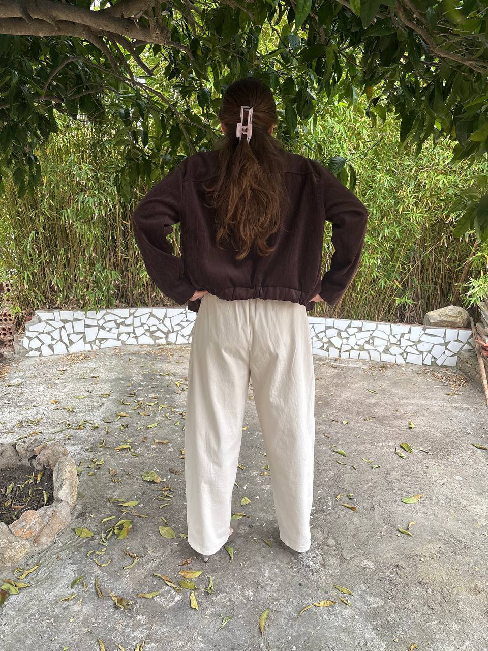 Chaqueta bomber de micropana de color marrón chocolate.